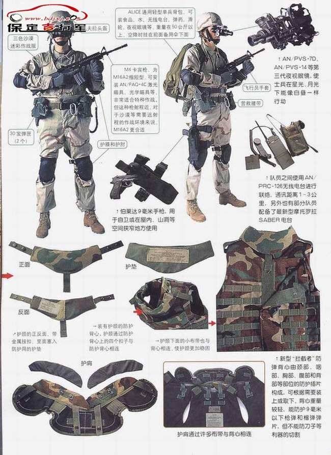 1、信息化程度高:美军单兵装备具备强大的信息化能力,能够实现实时通讯、情报共享等功能,大大提高了士兵的作战效率。