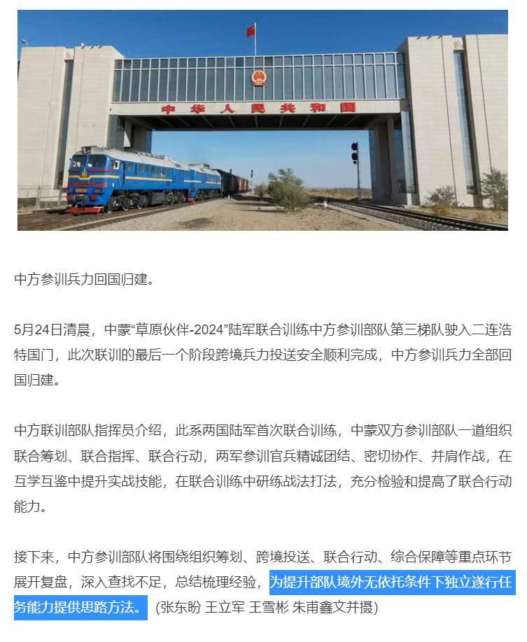 解放军进入蒙古国是两国友好关系的自然延伸,旨在深化军事领域的交流与合作,共同维护地区和平与安全,这一行动得到了地区的广泛关注和积极反响,为两国在更多领域的合作提供了契机,展望未来,中国与蒙古国在军事领域的合作前景广阔,共同为实现亚洲地区的和平与繁荣作出贡献。
